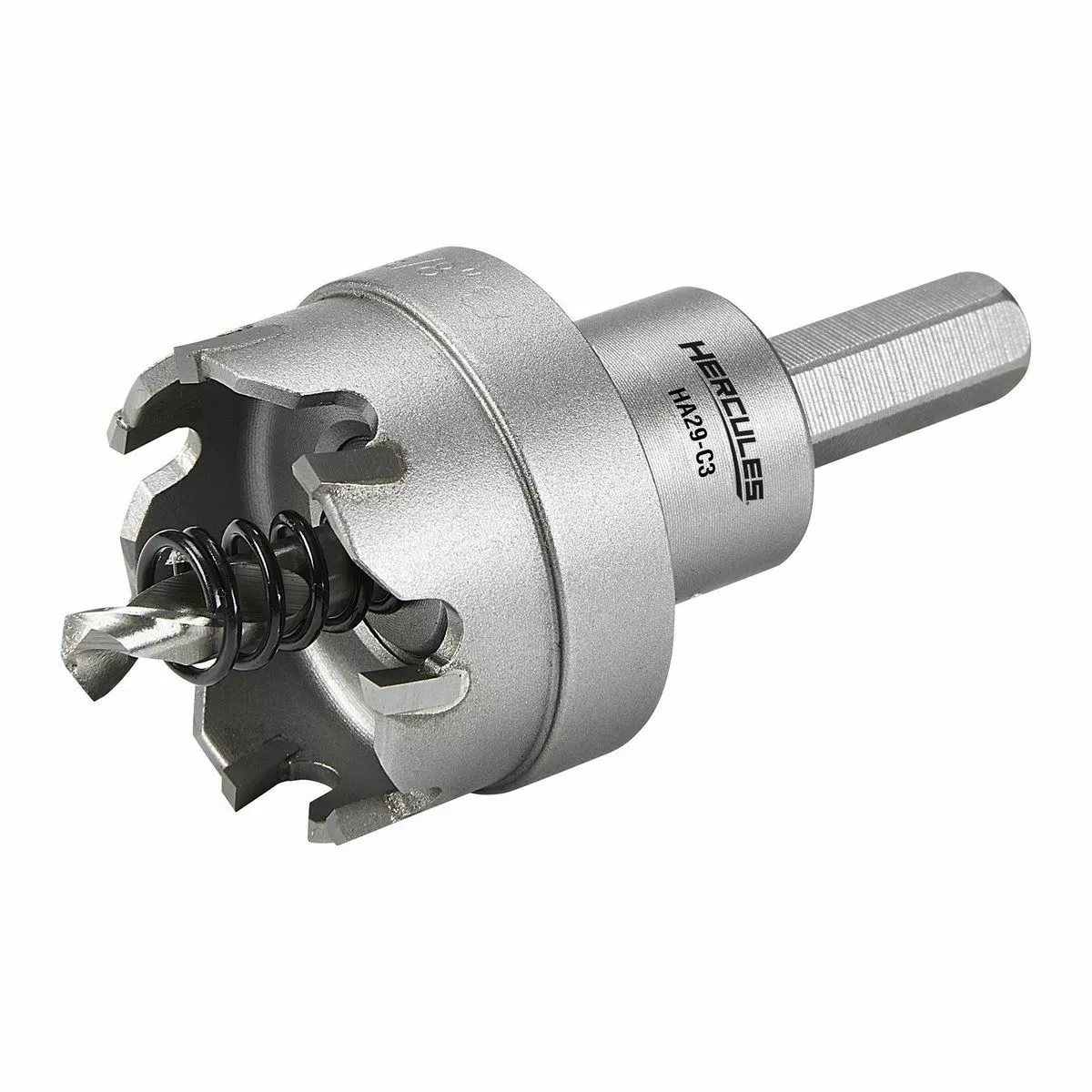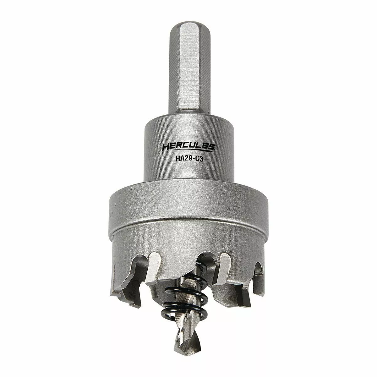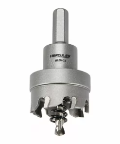 HERCULESβ’ Carbide Tipped Hole Cutter works 4X faster* for quickly drilling precise holes in sheet steel, iron, copper, brass, and stainless steel. Ejection spring removes the plug, making it easy to make repeat cuts. Designed for drill drivers and drill presses.