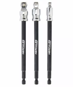 Heavy duty HERCULES™ Impact Rated 6 in. Wobble Socket Adapter are designed to allow some “give” to the socket so you can remove and install fasteners even you can’t get a straight-on approach. The TorqPoint™ Shock Absorbent Zone provides extra strength so you can use your impact sockets with a standard drill/driver or impact driver. The adapters are constructed with advanced metallurgy to stand up to heavy use in impact tools. Quick change 1/4 in. hex shanks. Black oxide coating increases durability and prevents corrosion.