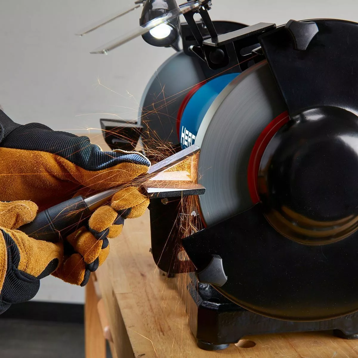 This bench grinder is a beast! The 8-inch wheel and variable speed control make it versatile for different tasks, and the LED worklight is a nice bonus. The grinder is well-built and feels durable. Iβve used it for both heavy-duty grinding and finer sharpening, and it performs excellently in both cases. Highly recommend it to anyone in need of a reliable bench grinder.
