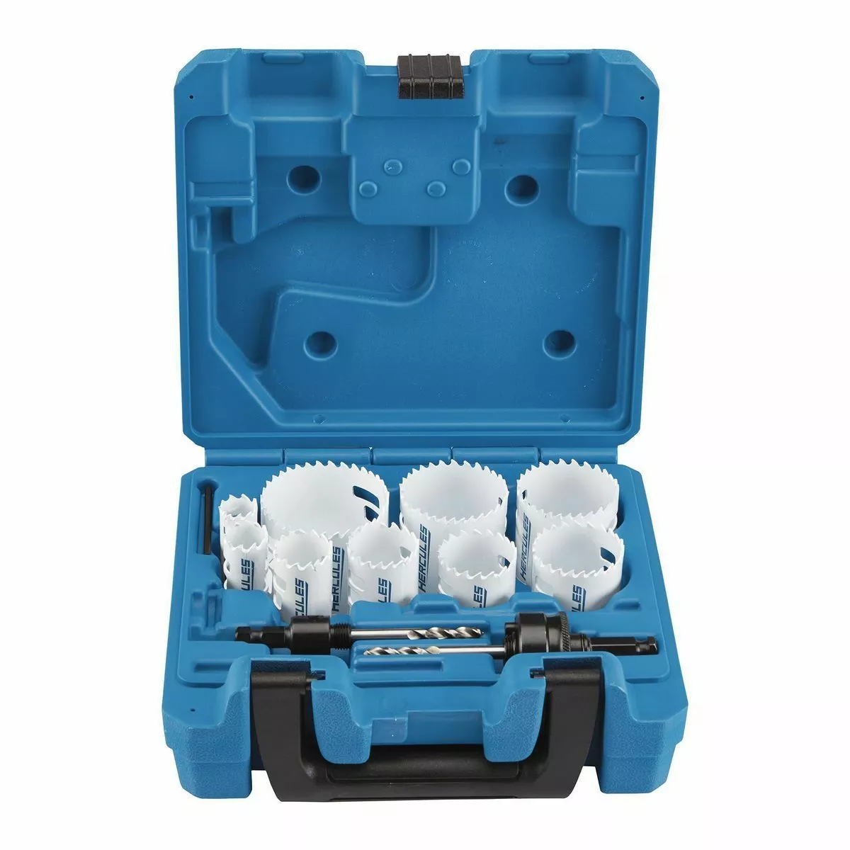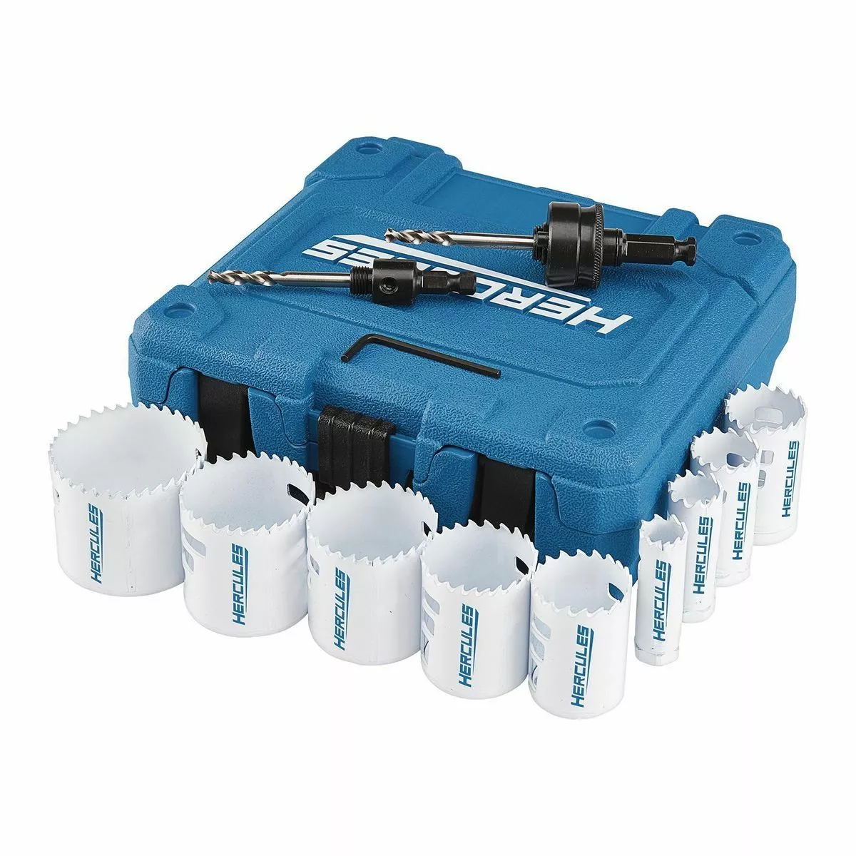 Cut precise holes in wood, plastic, aluminum, brass, steel alloys and even stainless steel with this bi-metal hole saw set. The set is constructed with alloy steel electronic beam welded to M42 high speed steel cutting edges for tougher, longer lasting performance. Features include variable teeth for less vibration, a durable enamel finish that wonβt rust or corrode and a heavy duty solid backing plate that won’t flex to ensure accurate holes every time.